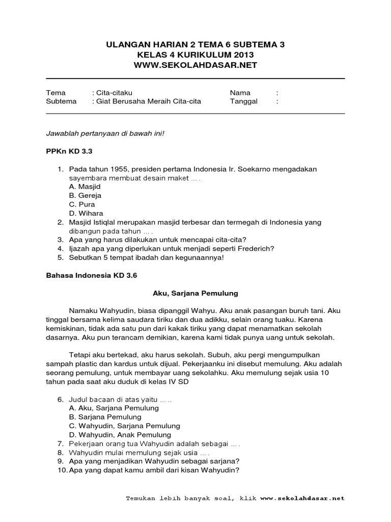 Cita cita wahyudi dan apa saja prestasi yang telah diraih wahyudin, tema 6 kelas 4 sd hal 121 122.